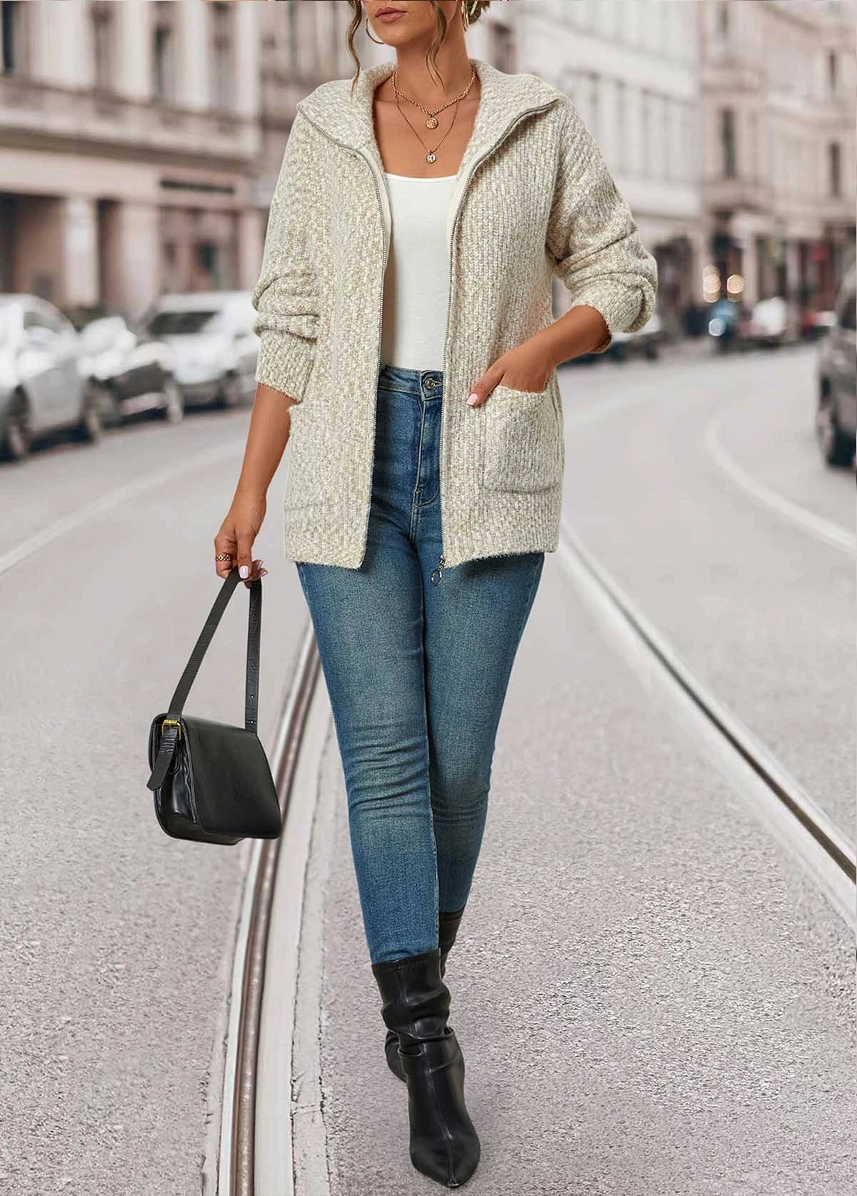 Be the first to review “Beige Zipper Long Sleeve Turn Down Collar Coat” Cancel reply