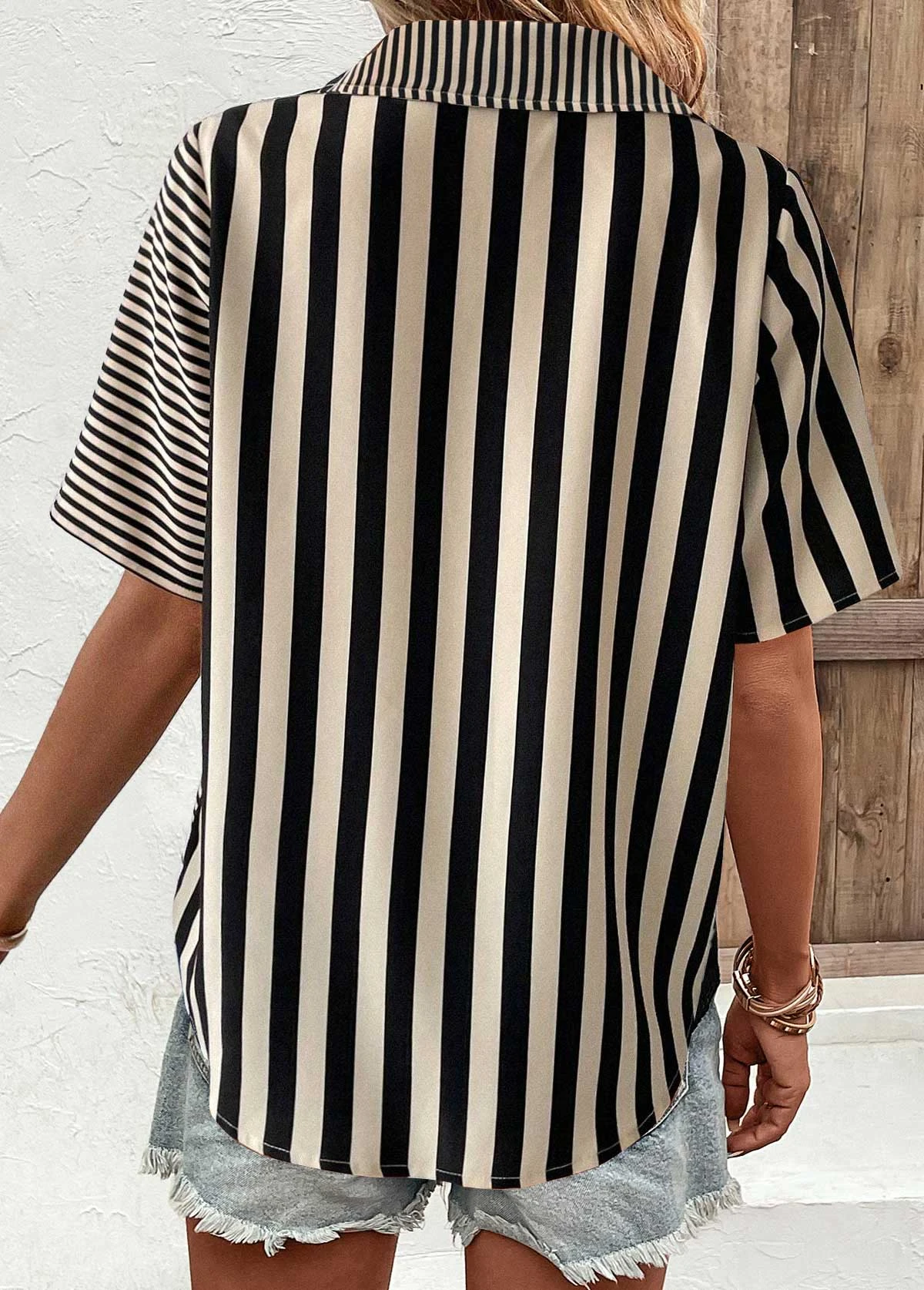 Be the first to review “Dark Camel Button Striped Short Sleeve Blouse” Cancel reply