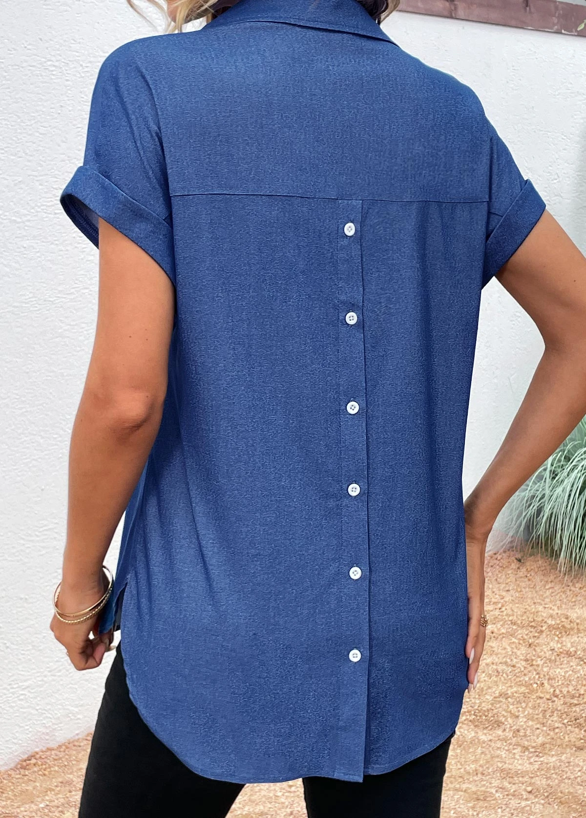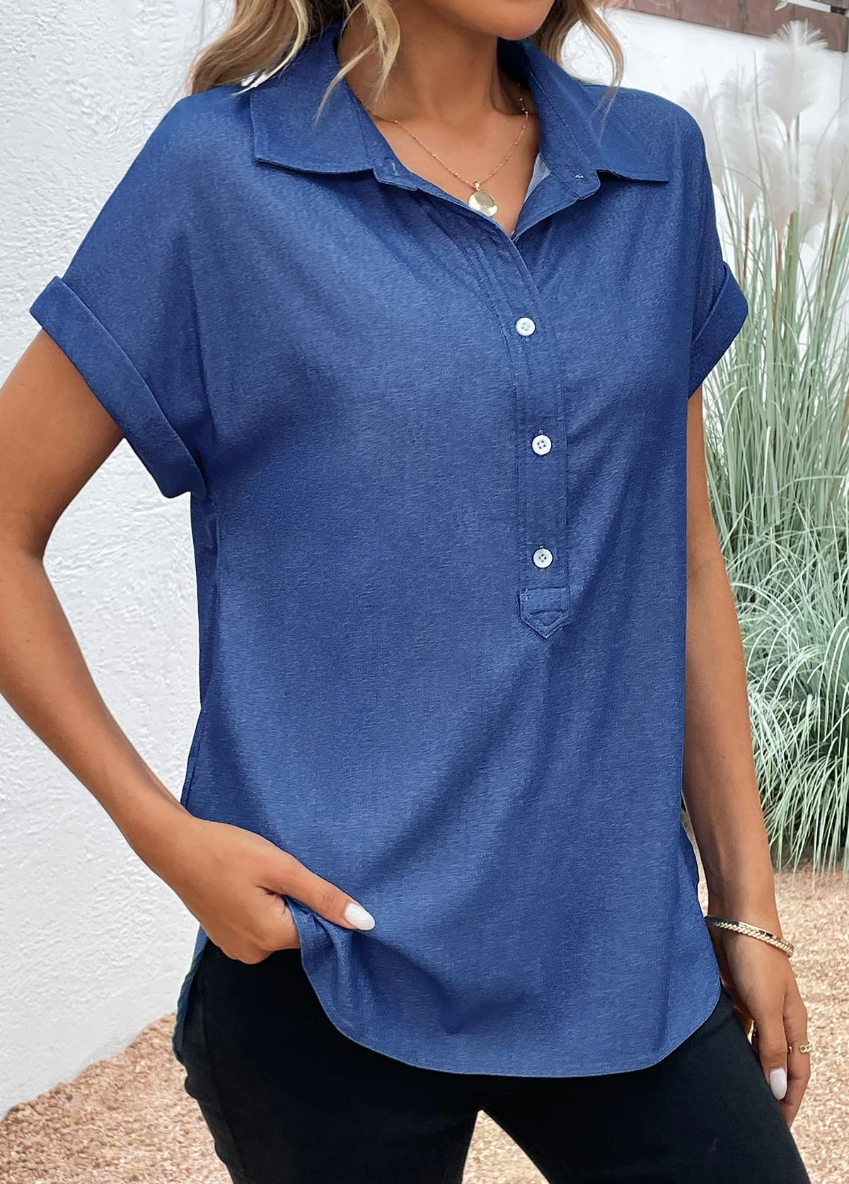 Be the first to review “Denim Blue Button Short Sleeve Shirt Collar Blouse” Cancel reply