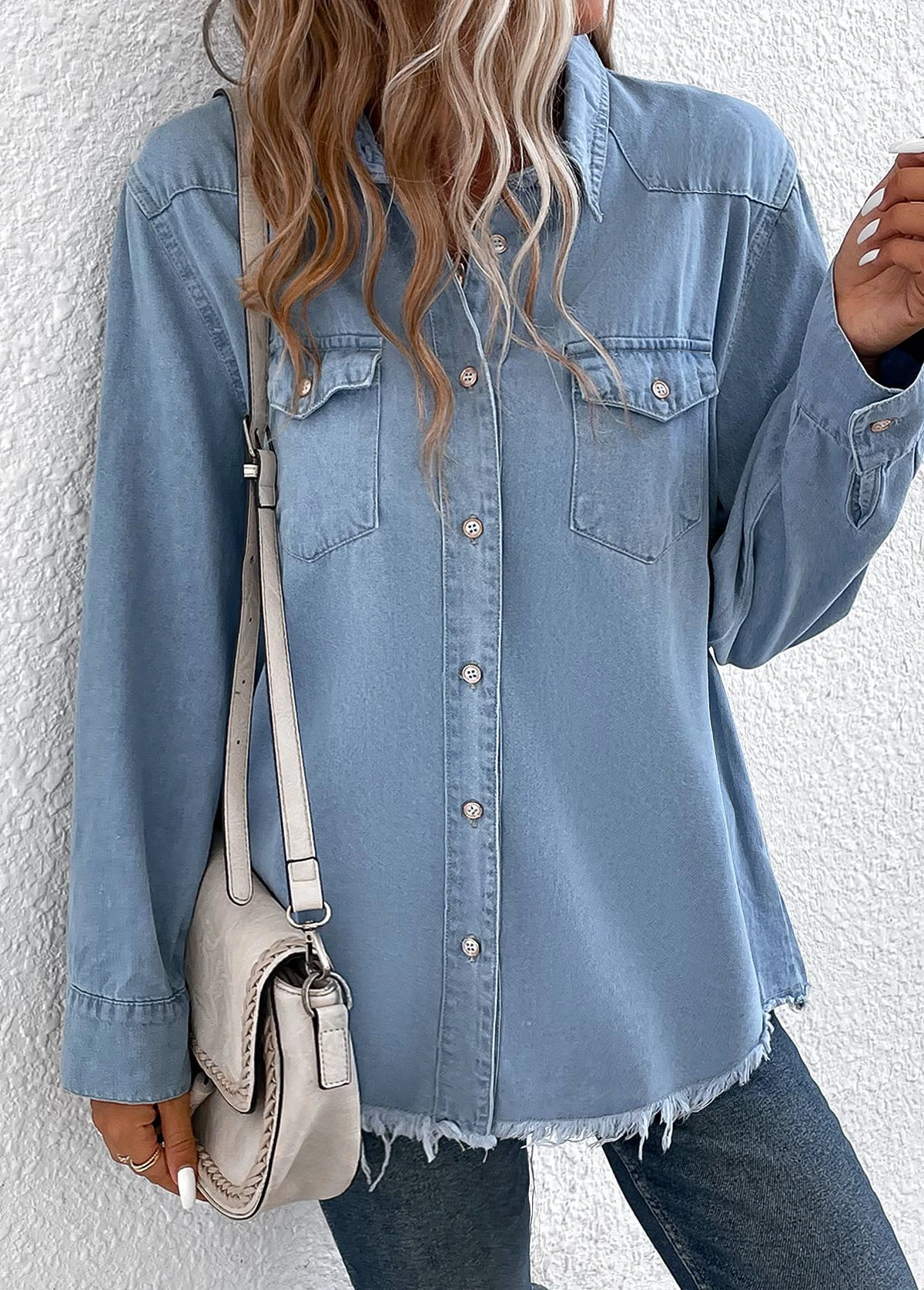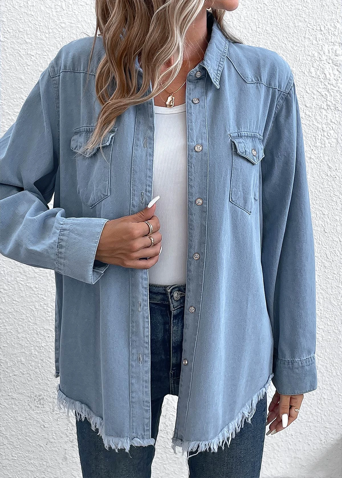 Be the first to review “Denim Blue Pocket Long Sleeve Shirt Collar Coat” Cancel reply