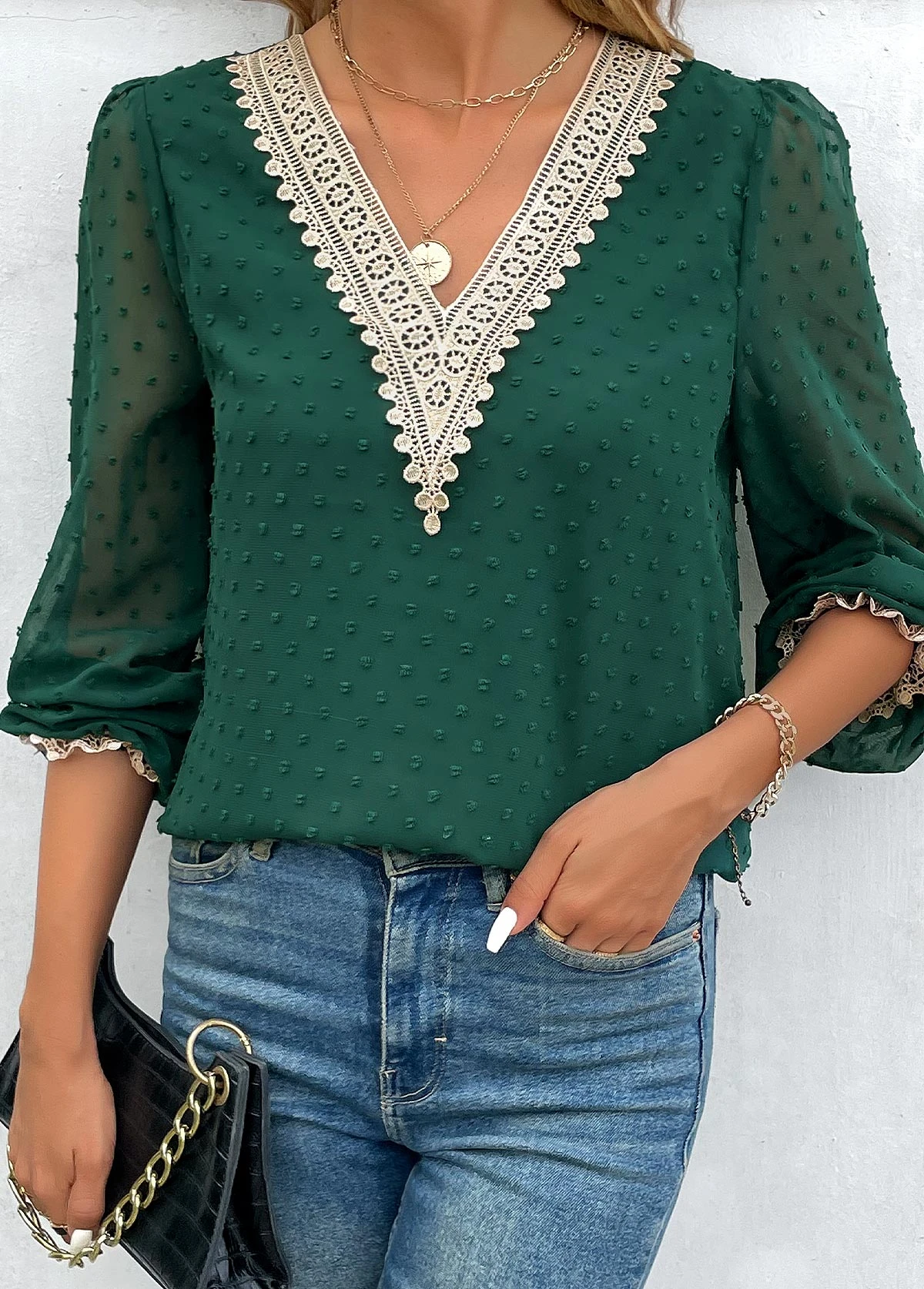 Be the first to review “Green Patchwork Long Sleeve V Neck Blouse” Cancel reply