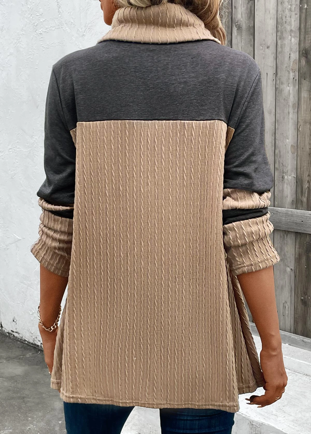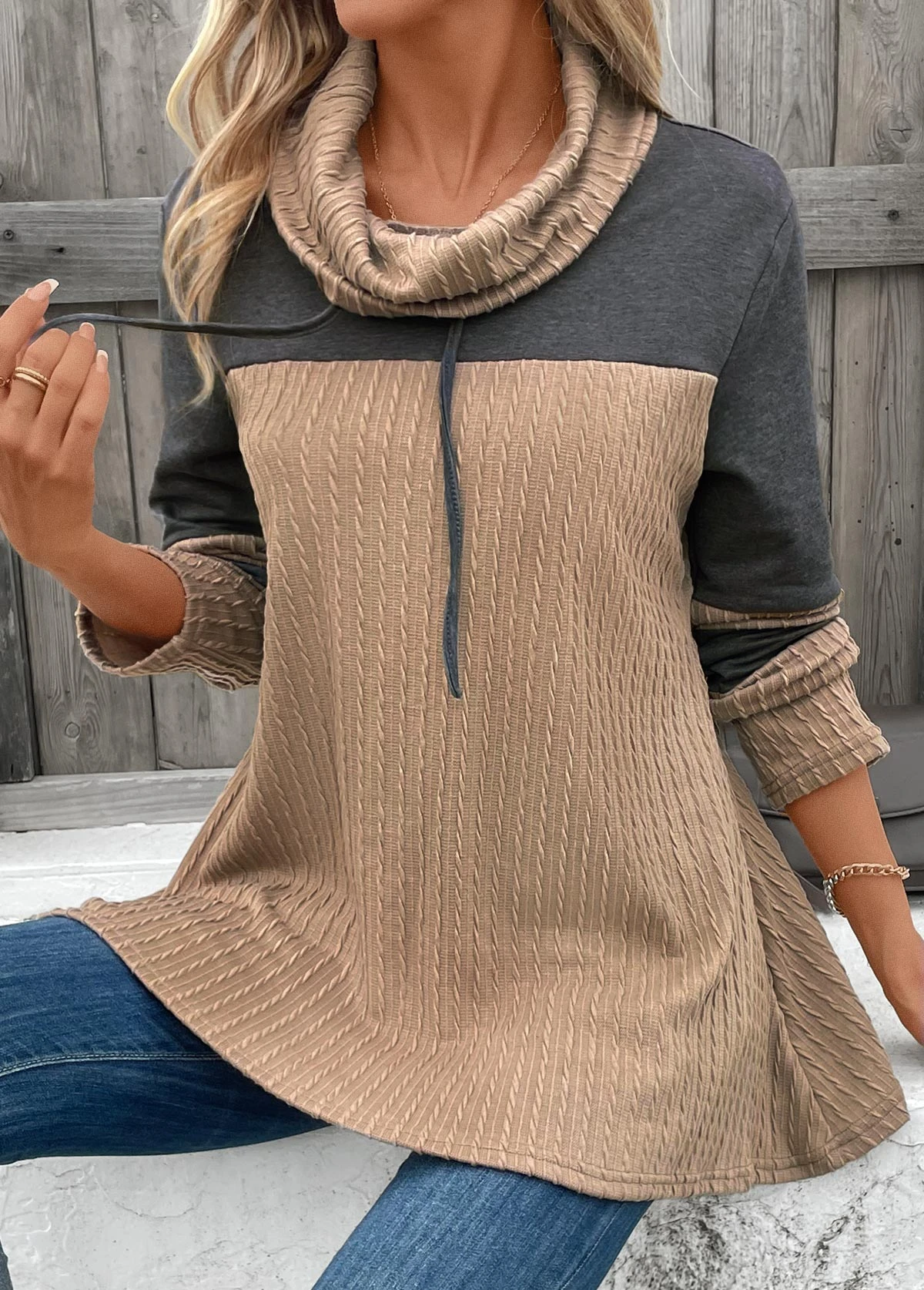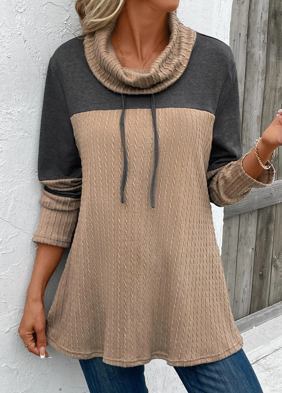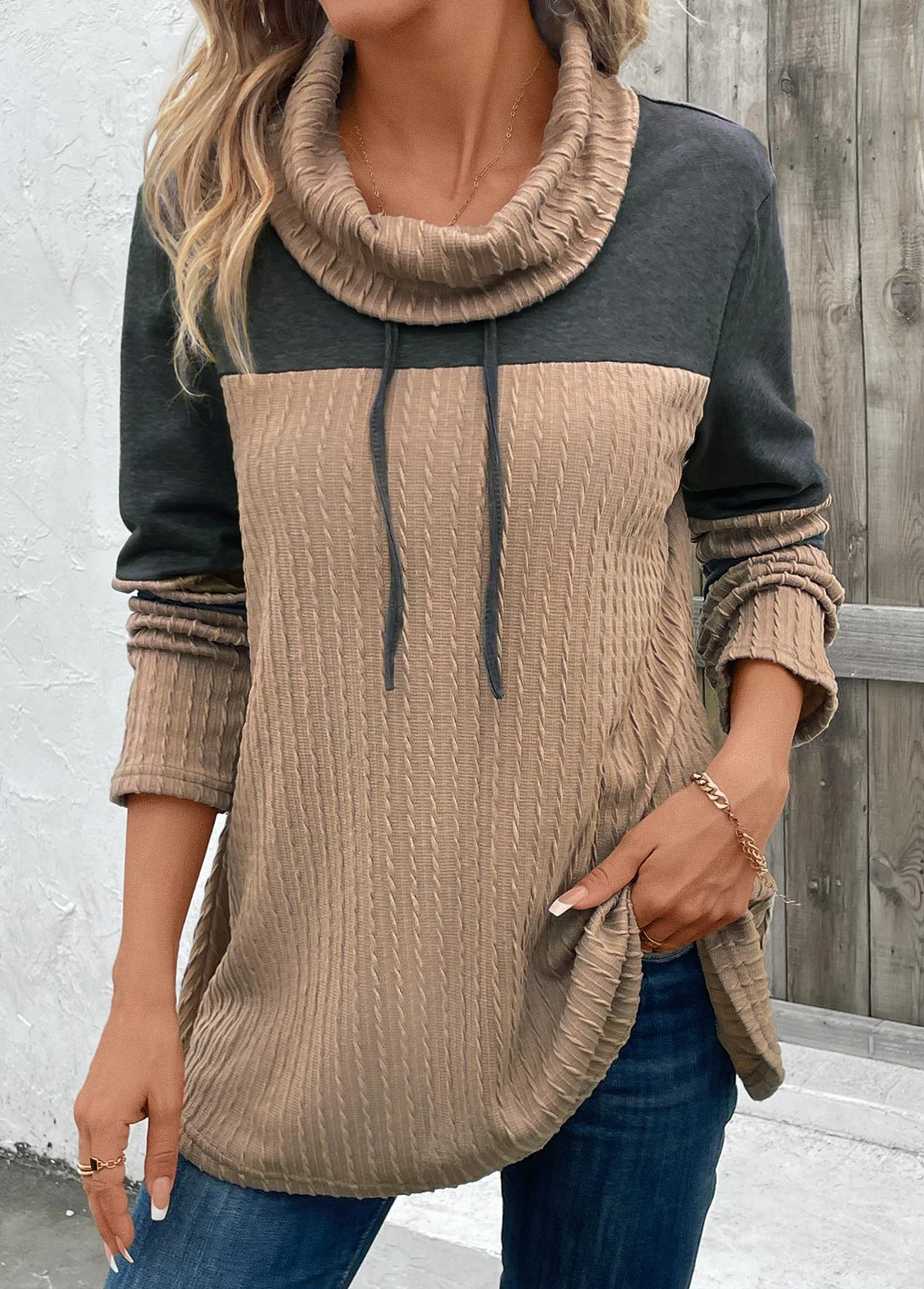 Be the first to review “Light Camel Patchwork Long Sleeve Cowl Neck Sweatshirt” Cancel reply