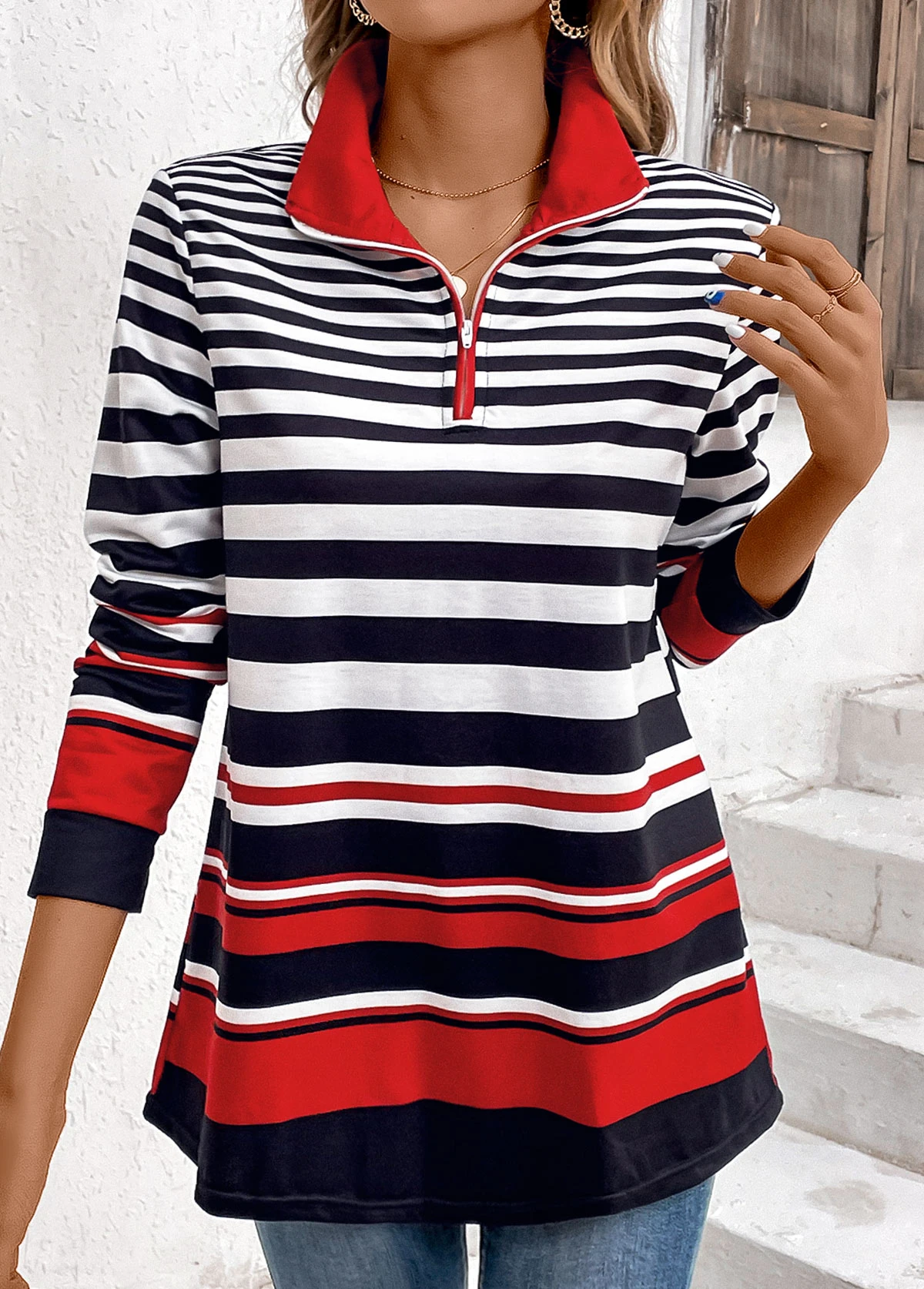 Be the first to review “Multi Color Zipper Striped Long Sleeve Sweatshirt” Cancel reply