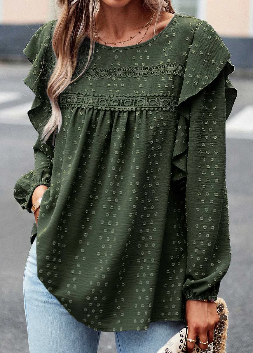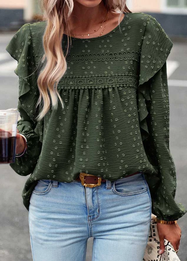 Be the first to review “Olive Green Ruffle Long Sleeve Round Neck Blouse” Cancel reply