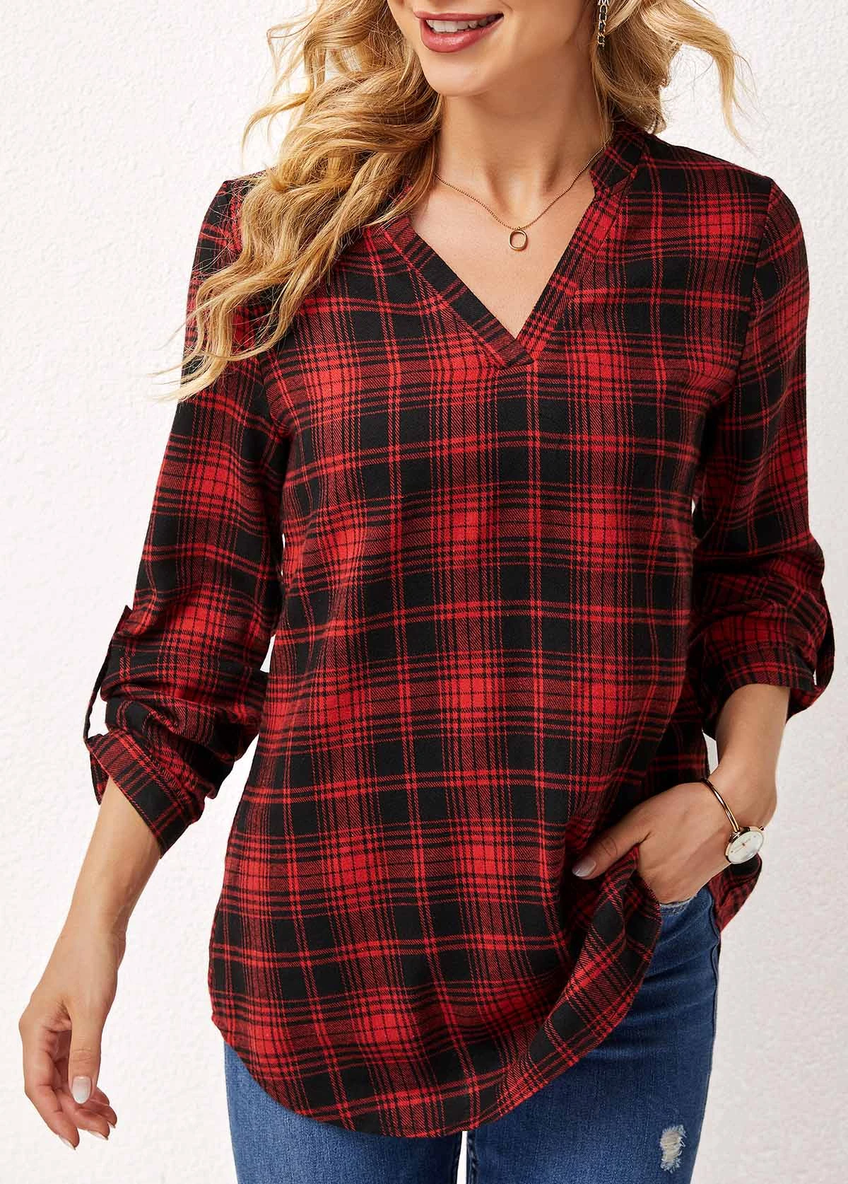 Be the first to review “Plaid Long Sleeve Split Neck Blouse” Cancel reply