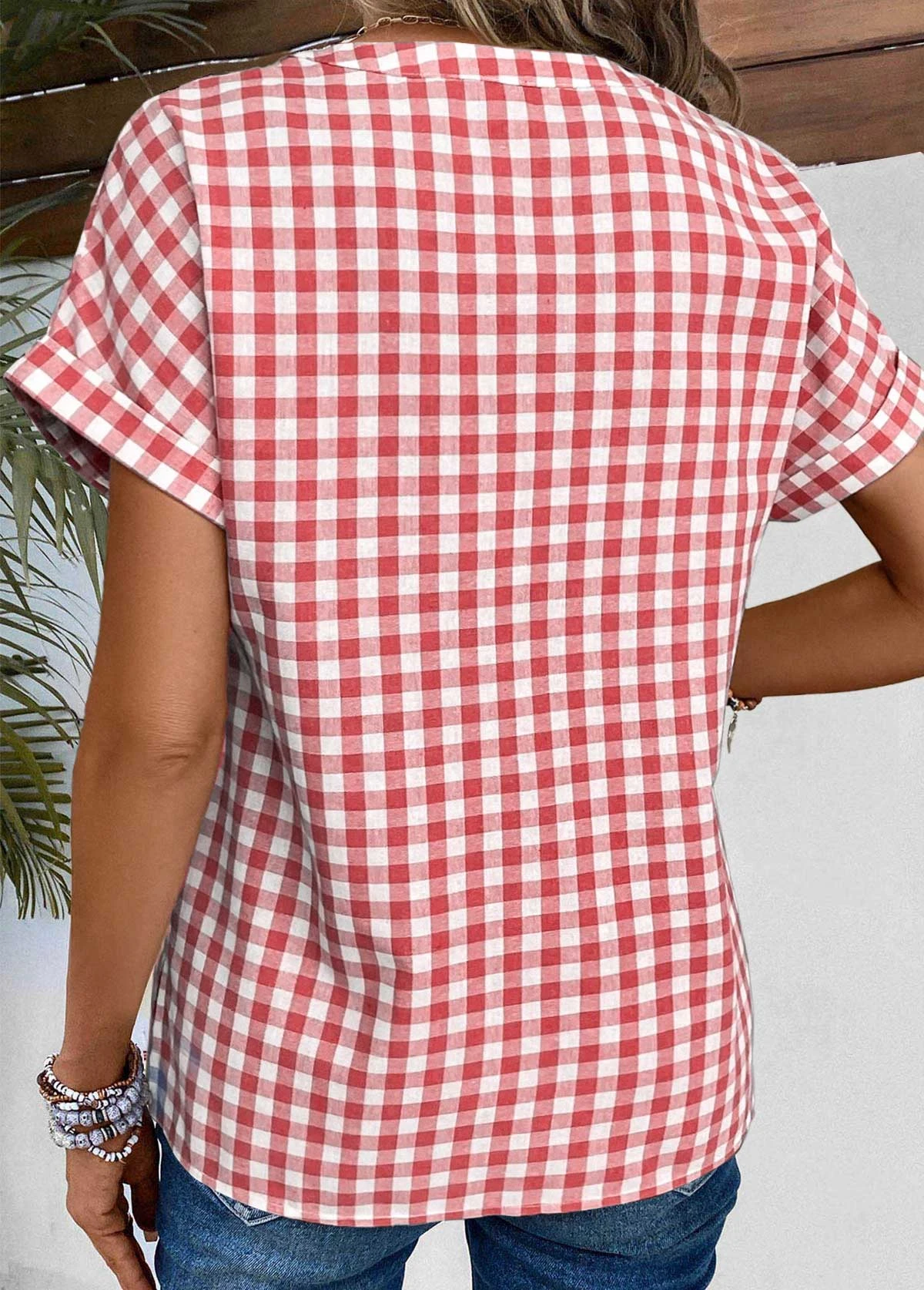 Be the first to review “Red Pocket Plaid Short Sleeve Split Neck Blouse” Cancel reply