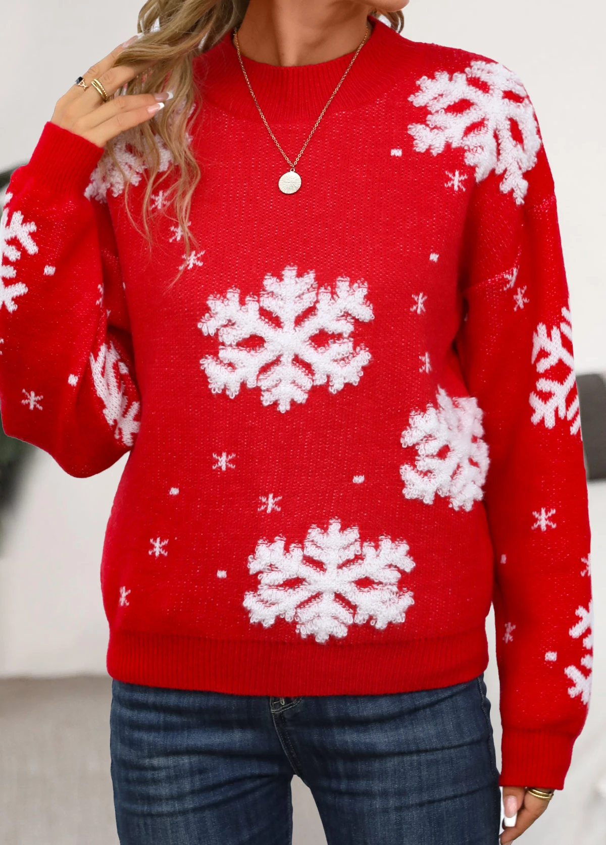 Be the first to review “Red Snowflake Print Long Sleeve Stand Collar Christmas Sweater” Cancel reply