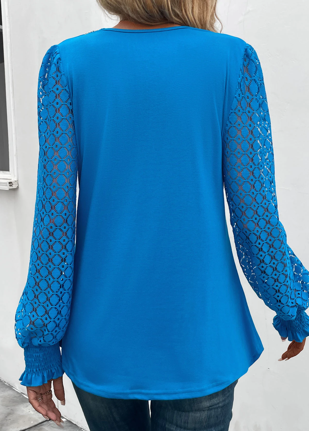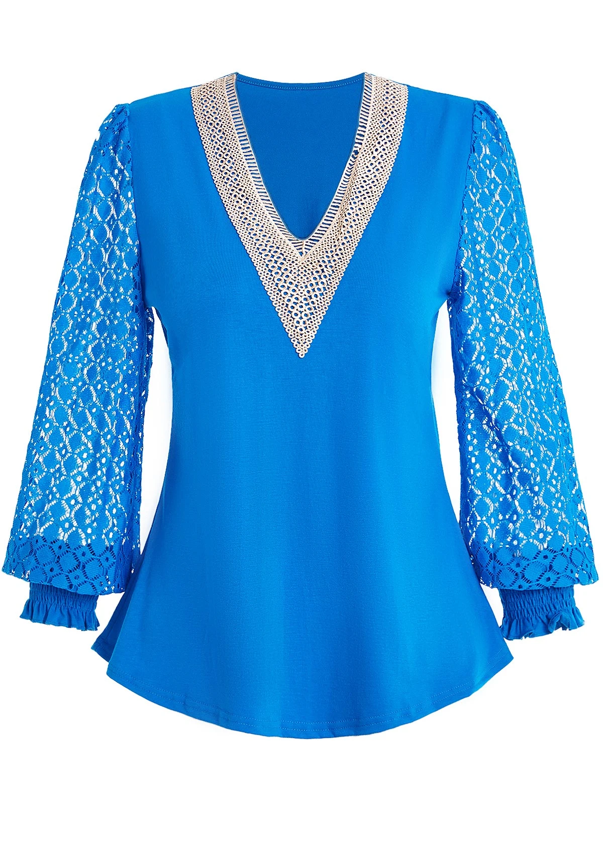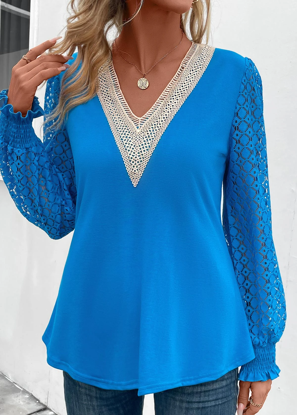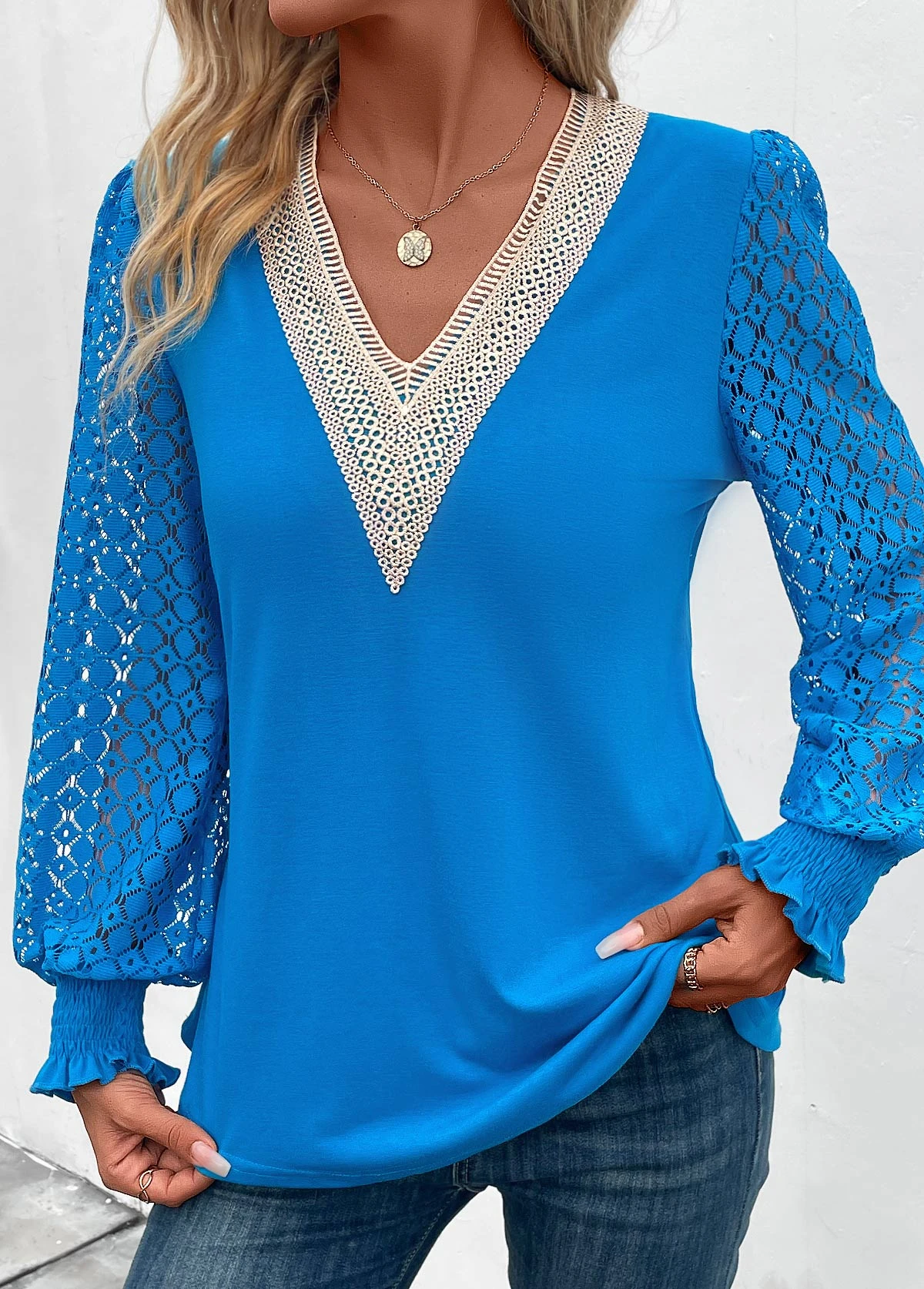 Be the first to review “Sky Blue Patchwork Long Sleeve V Neck Blouse” Cancel reply