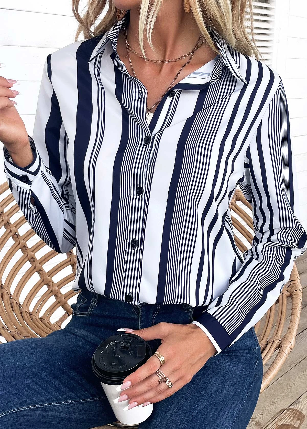 Be the first to review “White Striped Long Sleeve Shirt Collar Blouse” Cancel reply
