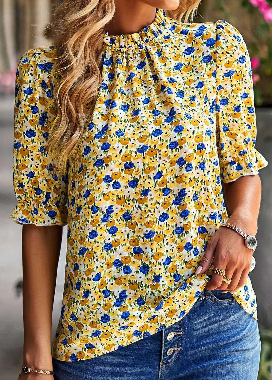 Be the first to review “Yellow Ruched Ditsy Floral Print Half Sleeve Blouse” Cancel reply